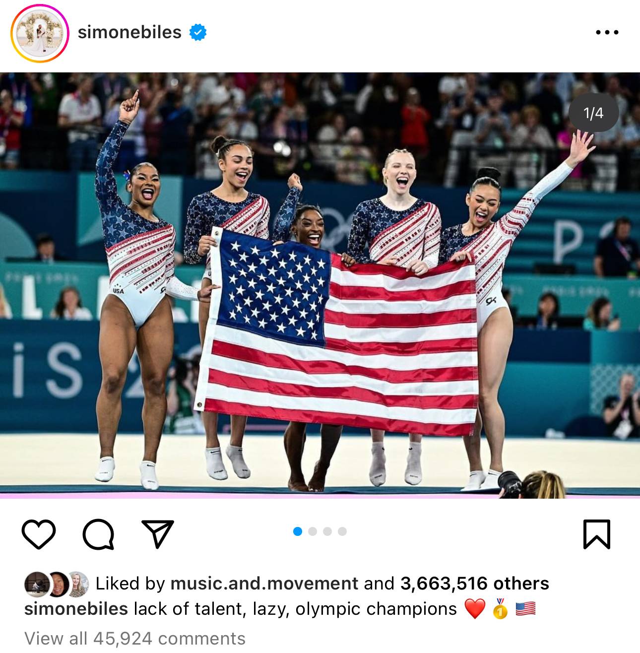 Listen To This Week's NewsletterSpotify | AppleHey Reader, As I mentioned last week in "What I'm Watching," I am currently enjoying a reacquaintance with the Olympics. I used to be a huge fan of the Games back when I was little, but right around the time they changed the schedule (i.e., alternating between winter and summer games every two years), I grew a little fatigued with the whole thing. What was once a four year excuse to celebrate turned into a not-as-special run-of-the-mill thing. I know, I am fickle, but I am also honest! For whatever reason, this summer, I have been bewitched by the likes of Stephen Neodoroscik (aka, "the Pommel Horse Guy"), Kim Yeji (the smoldering South Korean sharpshooter), and, of course, Simone Biles. Unless you've been living under a rock, by now you will have heard of the small-in-stature-but-gigantic-in-spirit captain of the USA's Women's Gymnastics Team. By the time you're reading this, she will have no doubt added even more medals to the already record breaking number she has collected throughout her career. Her career--her Olympics career, which started all the way back in 2016, when she was 19 years old. Believe it or not, just a few years earlier, 19 would have been considered a bit on the older side when it came to the average age of female gymnasts. From 1976 to 2000, the average age of a female gymnast was 16 to 17 (the age requirement was increased from 14 to 16 in 1997.) The average age increased to 18 in 2004 and 2008, and then to 19 in 2012 and 2016. (See NBC News) Biles was a little unlucky: though it's likely she would have qualified, she was just one year shy of the age requirement (16 years old) during the 2012 London Games, and was therefore required to wait another four years before competing on what many consider to be the most spectacular world stage. But when she finally arrived--she catapulted straight into the living rooms and hearts of Americans all over the country, securing gold in the All-Around, Team, Vault, and Floor Exercise, while claiming bronze on the Balance Beam, to boot. So, it came as quite a shock to fans around the nation when the Olympian elected to withdraw from the games in Tokyo (which took place a year delayed, in 2021, due to the pandemic). Perhaps things would have simmered down to a quiet rumbling had Biles withdrawn weeks before the Tokyo Games got under way, giving fans a little time to adjust to the news before the pomp and circumstance of the Opening Ceremonies diverted them; but, instead, she announced her withdrawal after they had already started, just before the Team Final and All-Around events. Claiming she had the "twisties"--a phenomenon not unlike the "yips" in golf--Biles stated she would withdraw from the games to give the other women on her team the best chance at medaling and "to focus on [her] mental health and not jeopardize [her physical] health and well-being.” (See CNN) Although Biles's withdrawal ultimately paved the way for other gymnasts to strut their stuff--e.g., Sunija Lee, Biles's teammate, brought home the All-Around Gold Medal for the U.S.--the cost to Biles herself was immediate and brutal. Within hours of her announcement, Biles became a talking point for conservative politicians, a walking embodiment of a culture of "weakness" nurtured by the progressive "woke" left. Turning Point USA founder, Charlie Kirk, called her a "selfish sociopath," North Carolina Lt. Gov. Mark Robinson dubbed her "weak," and JD Vance (now running mate to Donald Trump) opined that "it reflects pretty poorly on our sort of therapeutic society that we try to praise people, not for moments of strength... but for their weakest moments." Although I was not an avid watcher of the Tokyo Games (I basically watched zero sports during the pandemic), even I remember being a little bewildered by Biles's decision. Though I certainly didn't think she was a "sociopath" (I honestly don't even understand how this is part of the conversation...), I also wondered whether she was getting a little too inside her own head, giving up prematurely, and, yes, letting her teammates down. Because here's the thing: if I were in her shoes, the fear of disappointing my coach, my team, and the millions of people all over the country who were counting on me to represent the U.S. of A would have absolutely prevented me from even thinking of withdrawing. The other thing, of course, was that Biles was 24 years old at the time of the Tokyo Games--well above the average age of female gymnasts (which, by that time, was 20). Her reappearance on that world stage was, by no means, a guarantee. Again, unless you've been living under a rock, you will know that I was so so so SOooooooOOOOO wrong. How DARE I underestimate THE Simone Biles?!? With Biles back at the helm, Team USA dominated the Team Finals in Paris, securing the Gold Medal with a staggering 5.8 margin. Biles went on to re-establish her individual dominance as well, winning the Gold in the All-Around competition, while her teammate, the reigning Olympic All-Around champion, Sunija Lee, collected Bronze (which, given her frightful ordeal with kidney disease in the past two years, is, itself extraordinary). In short, Simone Biles's comeback is the stuff of legends. Biles's caption beneath her victorious Instagram post reads: "lack of talent, lazy, olympic champions." At first, I assumed she was referring to all those who'd come for her when she withdrew back in 2021, the disturbingly angry men who'd called her "selfish," "weak," and even "sociopathic." But it turns out that the words were meant for one of Biles's former teammates, a woman who was not on the 2024 team, but for some unfathomable reason thought it was entirely ok to declare on YouTube, "Besides Simone, I feel like the talent and the depth just isn't like what it used to be." This former (idiotic) teammate goes on to say, "The girls just don't have the work ethic." Not-that-smart-former-teammate then appears to lament 